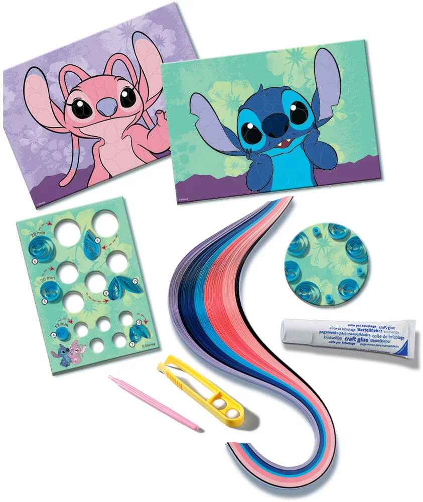 C’est facile avec ce coffret de devenir un artiste avec du papier comme matériel de création ! Deux tableaux de Stitch ou Angel sont regroupés au sein d’un même coffret. Réalisez des créations en quilling puis décorez votre chambre avec ou offrez-les à vos proches ! Dès 6 ans. Ce produit est composé de matériaux issus de forêts bien gérées certifiées FSC®, de matériaux recyclés et de matériaux issus d’autres sources contrôlées (FSC-C111262).
