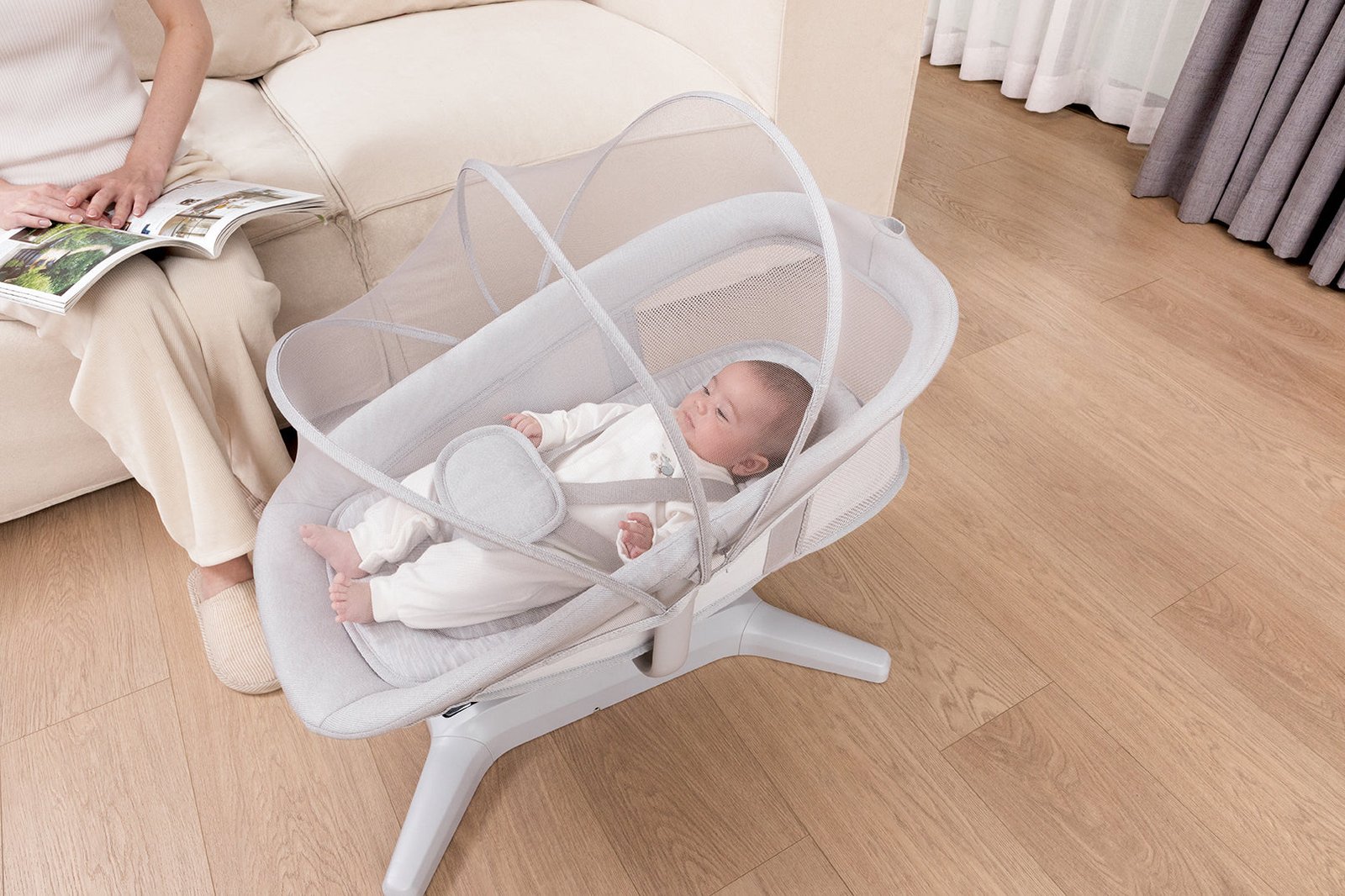 Les côtés en maille aérée offrent un confort optimal et permettent à maman de garder bébé à portée de vue.