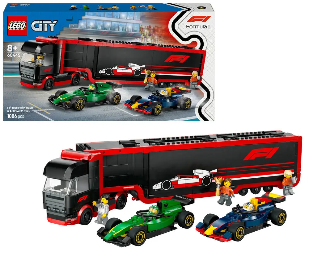 Tout savoir sur le produit Lego City 60445 – Camion De F1 Avec Voitures De F1 Rb20 Et Amr24