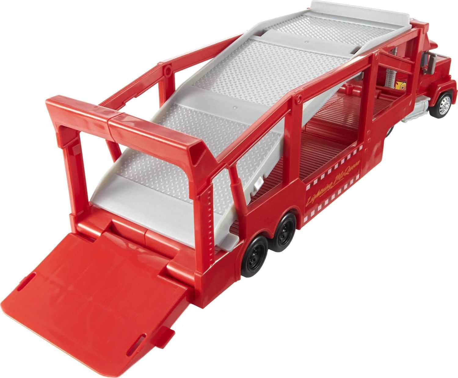Grâce au véhicule Disney Pixar Cars Mack Transporter, aucune voiture de course ne sera laissée pour compte ! Ce Mack mesure 33 cm de long et peut contenir 12 petites voitures représentant les personnages du film (vendues séparément). Ouvrir la porte arrière pour les opérations de chargement et de déchargement ; le niveau supérieur s’abaisse pour devenir une longue rampe qui facilite l’accès. Une fois que tout le monde est à bord, lancez l’aventure en poussant. Les enfants et les fans de Cars peuvent recréer leurs scènes préférées et inventer de nouvelles aventures en laissant libre cours à leur imagination ! Les couleurs et les décorations peuvent varier.