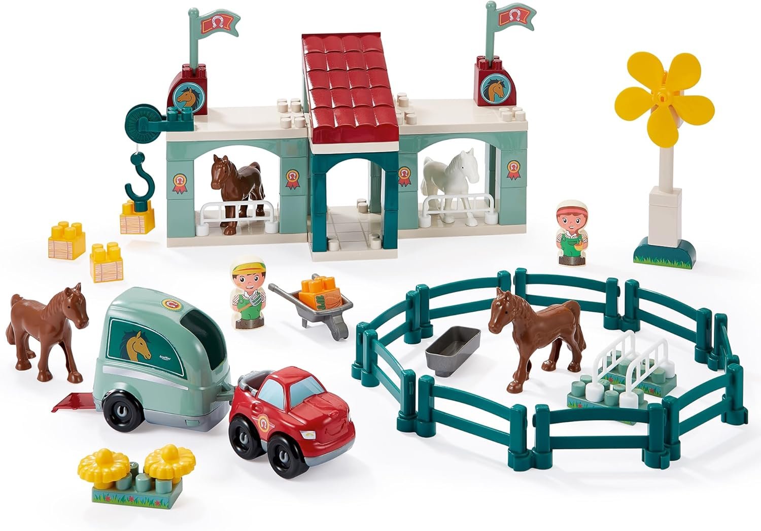 Fabriqué en France avec des matériaux sûrs, ce centre hippique est idéal dès 18 mois pour allier construction, jeu libre et découverte du monde animal.