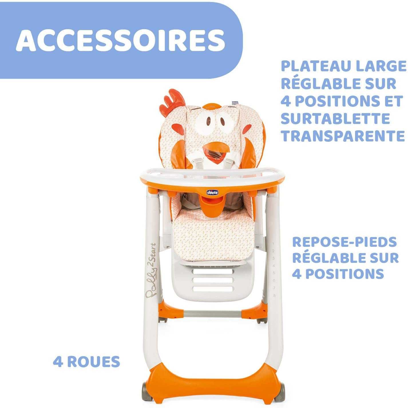 La Chaise Haute Polly fancy – Chicco est utilisable des la naissance et jusqu’a 3 ans : 1. Configuration Transat/Relax pour une utilisation des la naissance 2. Chaise haute bébé des 6 mois pour franchir l’étape du sevrage 3. Chaise enfant de 1 a 3 ans pour s’asseoir a table avec les grands Polly 2 Start est une chaise haute très confortable et évolutive. D’un simple geste, le dossier s’ajuste en largeur pour apporter a bébé un confort optimal durant les différentes étapes de sa croissance. L’assise rembourrée et le repose-pieds réglable sur 3 positions conférent a bébé une position toujours très confortable.