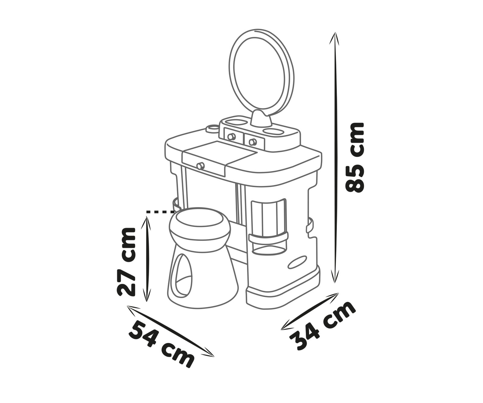 Structure de coiffeuse en plastique soufflé qui garantit une rigidité et une robustesse parfaite dans le temps.