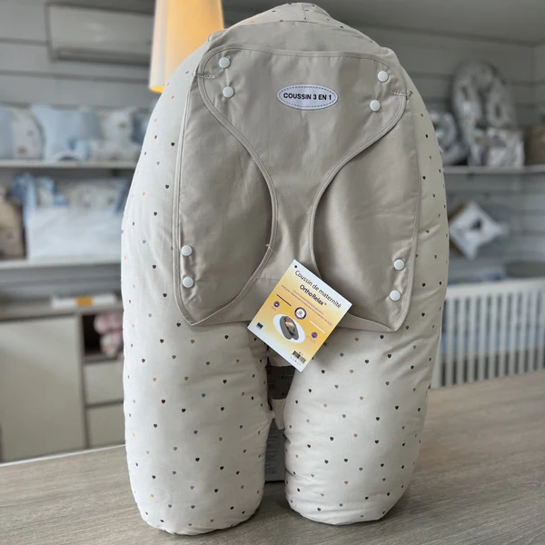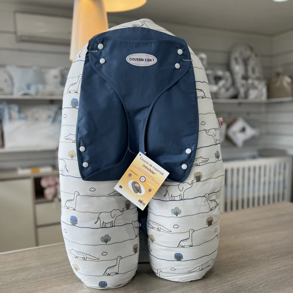 C’est un coussin 3-en-1 conçu pour accompagner maman et bébé à différentes étapes :