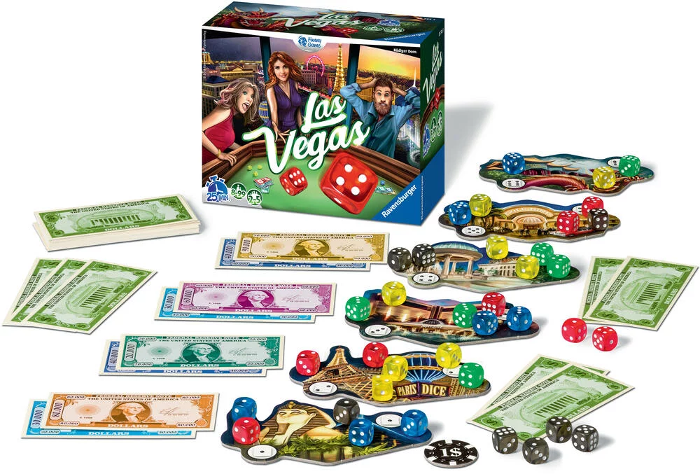 Hé, les flambeurs ! Visitez 6 casinos aux gains bien différents. Placez astucieusement vos dés pour essayer de remporter un maximum de cash sous le nez de vos adversaires. Bluff, manipulation, coups d’éclats, tout est bon pour arriver à vos fins. Mais soyez prudent, ce genre de lutte autour des plus gros billets peut mal tourner, et vous pourriez risquer de tout perdre. Un jeu de dés simple et addictif dans l’univers tape-à-l’œil de Las Vegas.