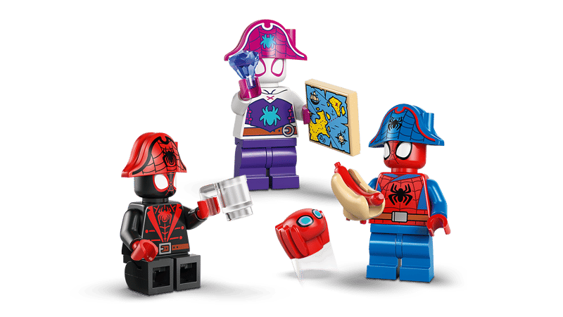 Embarquez pour des aventures créatives à bord du Bateau Pirate de l’Équipe Spidey (11208) avec Spidey, le Bouffon Vert, Ghost-Spider et Miles « Spin » Morales.