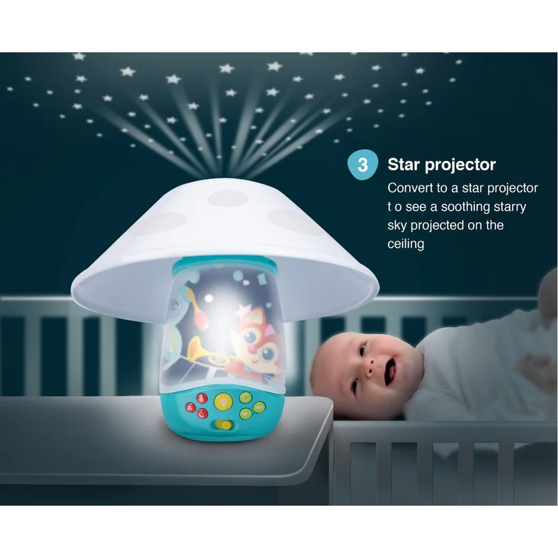 Bercez bébé pour de doux rêves avec ce mobile projecteur 3-en-1 apaisant.