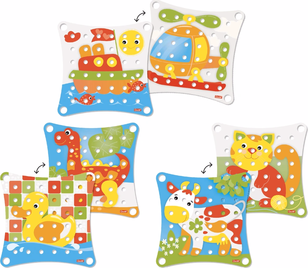 Première approche des chevilles pour les enfants. Elles sont nombreuses et colorées, grandes et empilables, vous pourrez composer des mosaïques colorées ou construire des tours très hautes. Un excellent jeu qui stimule la créativité et la dextérité.