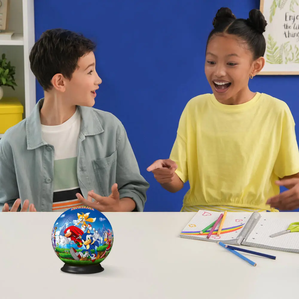 Un puzzle 3D rond Sonic, facile à assembler grâce à ses 72 pièces numérotées. Il suffit de suivre l’ordre des numéros et le sens des flèches indiqués au verso des pièces de puzzle.
