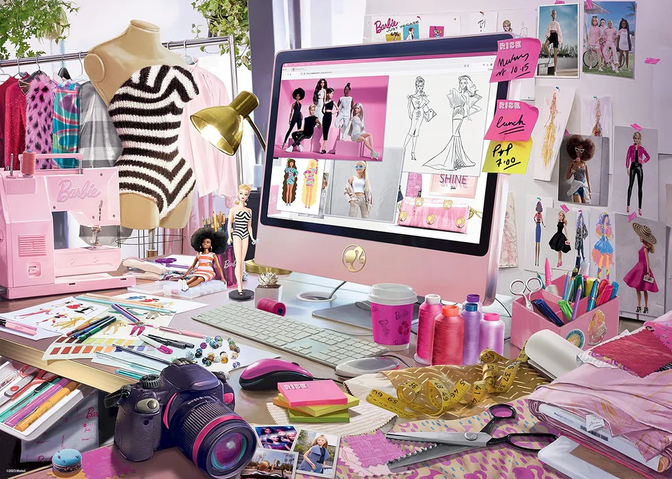Barbie a toujours été une icône de la mode, et ce puzzle capture une journée dans la vie professionnelle d’une styliste Barbie. Croquis et photos remplissent l’écran d’ordinateur : autant d’idées pour les collections à venir. Le bureau est jonché de nuanciers, d’échantillons de tissus et de fils, de stylos, de ciseaux et autres accessoires, tandis que la styliste puise son inspiration pour donner vie à ses idées. On y trouve également une machine à coudre Barbie, un appareil photo Polaroid et des vêtements grandeur nature, afin que toutes les créations pour Barbie suivent les dernières tendances du monde « réel ». Ce puzzle aux détails exceptionnels est un cadeau idéal ou un passe-temps parfait pour les fans de Barbie du monde entier. C’est une excellente façon de se détendre et de s’offrir un moment de contemplation.