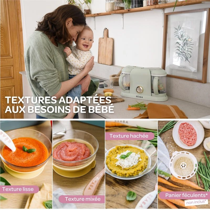 Le panier de cuisson amovible permet de récupérer l’eau de cuisson riche en vitamines et minéraux pour moduler la texture des préparations selon les besoins de votre bébé.