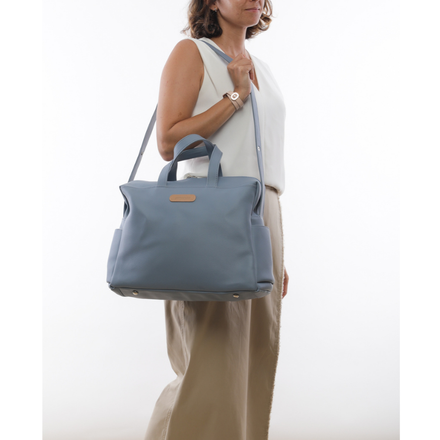 - Passez une bonne journée avec ce sac maman moderne et confortable. Le sac de maternité Dora Bleu Canard de Primanata est multifonctionnel : vous pouvez le porter comme un sac à main avec une bandoulière chic ou le porter avec ses larges anses. Il est également accrochable à votre poussette grâce à ses boutons pression.