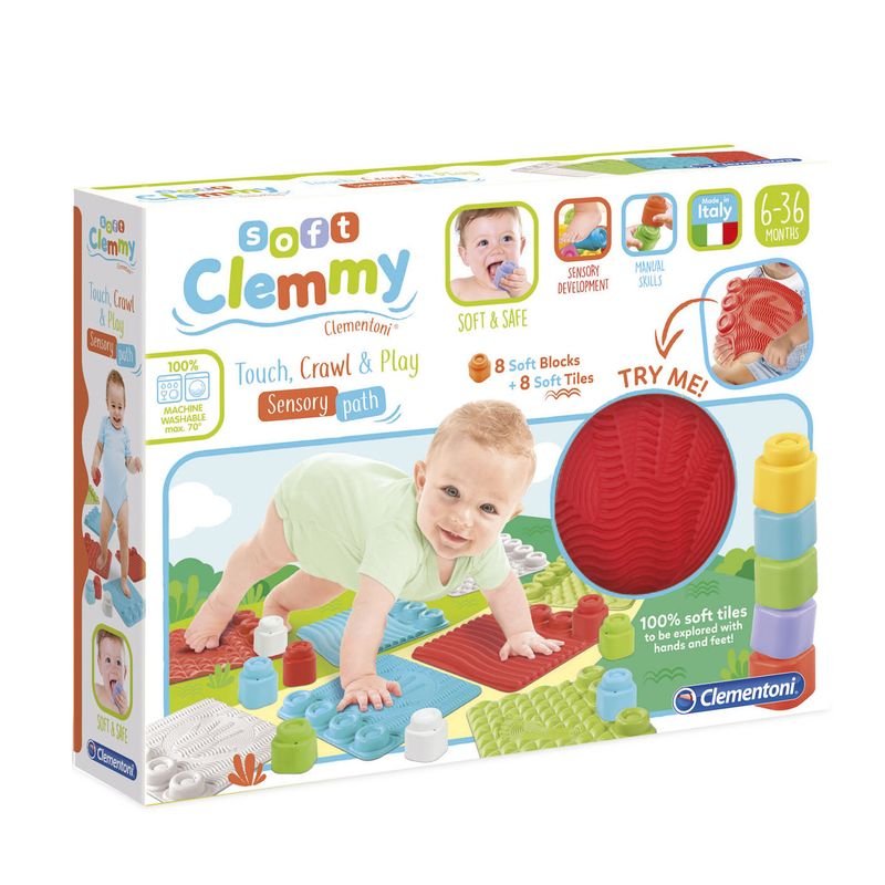 Une belle expérience tactile à vivre en assemblant les maxi pièces en caoutchouc souple, sûr et non toxique, conçues pour créer une expérience stimulante pour les tout-petits. La surface des pièces présente différentes textures en relief pour stimuler la perception tactile de l’enfant. Grâce aux formes Clemmy présentes sur les pièces, l’enfant peut assembler les briques entre elles pour créer des tours. Stimule la perception tactile, les capacités d’observation et les compétences manuelles. Un tapis pour éveiller les sens de bébé et pour qu’il joue en toute sécurité. 8 tapis et 8 briques souples à assembler pour que bébé découvre différentes formes et textures.