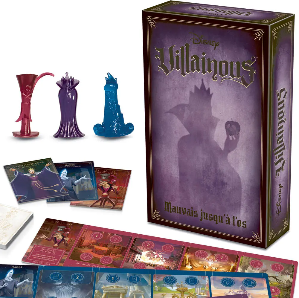 Incarnez un méchant de Disney et tentez d’atteindre votre propre objectif diabolique avant les autres. Découvrez 3 nouveaux personnages, soit 3 nouveaux objectifs et 3 nouvelles manières de jouer pour devenir le plus grand méchant Disney : – La Méchante Reine et ses poisons mortels tentera d’enfin venir à bout de Blanche Neige , – Hadès enverra ses terribles titans terrasser Hercule et conquérir le mont Olympe , – le Dr. Facilier de la Princesse et la grenouille pactisera avec les esprits Vaudou pour régner sur la Nouvelle-Orléans. Utilisez astucieusement vos capacités spéciales et tentez de ruiner les plans de vos adversaires. Cette extension de Villainous, le jeu le plus diabolique de l’année, est jouable avec ou sans le jeu de base. Réveillez le Mal qui est en vous et devenez le pire Méchant de tous les temps !