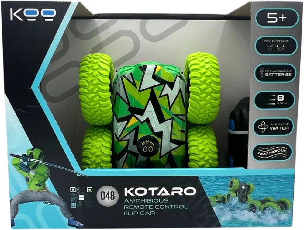 Le KOTARO 048 est le premier du genre. Cette voiture amphibie peut rouler sur terre et dans l’eau et également se retourner dans tous les environnements. De plus, la télécommande est totalement étanche et vous n’avez pas besoin de sortir de l’eau pour jouer avec. L’ensemble du véhicule est entièrement étanche, ce qui permet de passer sans problème de la terre à l’eau. Optimisé pour rouler sur terre, nager dans l’eau et se déplacer sur des surfaces mouillées. Sauts à 360 degrés : Capable de réaliser des cascades, de se retourner dans les deux sens, sur terre comme sur l’eau. Construction tout-terrain : Corps résistant aux chocs et pneus robustes pour la conduite tout-terrain, l’eau, le sable, l’herbe et la boue. Émetteur 100 % étanche : Peut être immergé ou exposé à des environnements humides sans dysfonctionnement. E-KOO FRIENDLY batterie rechargeable – Dès 5 ans – 3.7V 500 MAH LI-ION